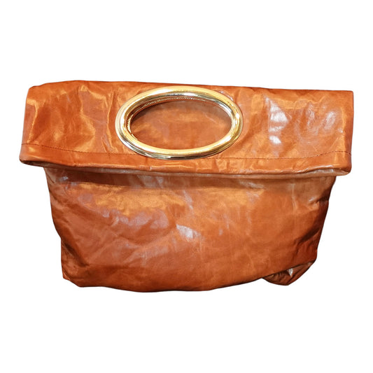 Morphy Cognac Leather Clutch Bag With Gold Handle