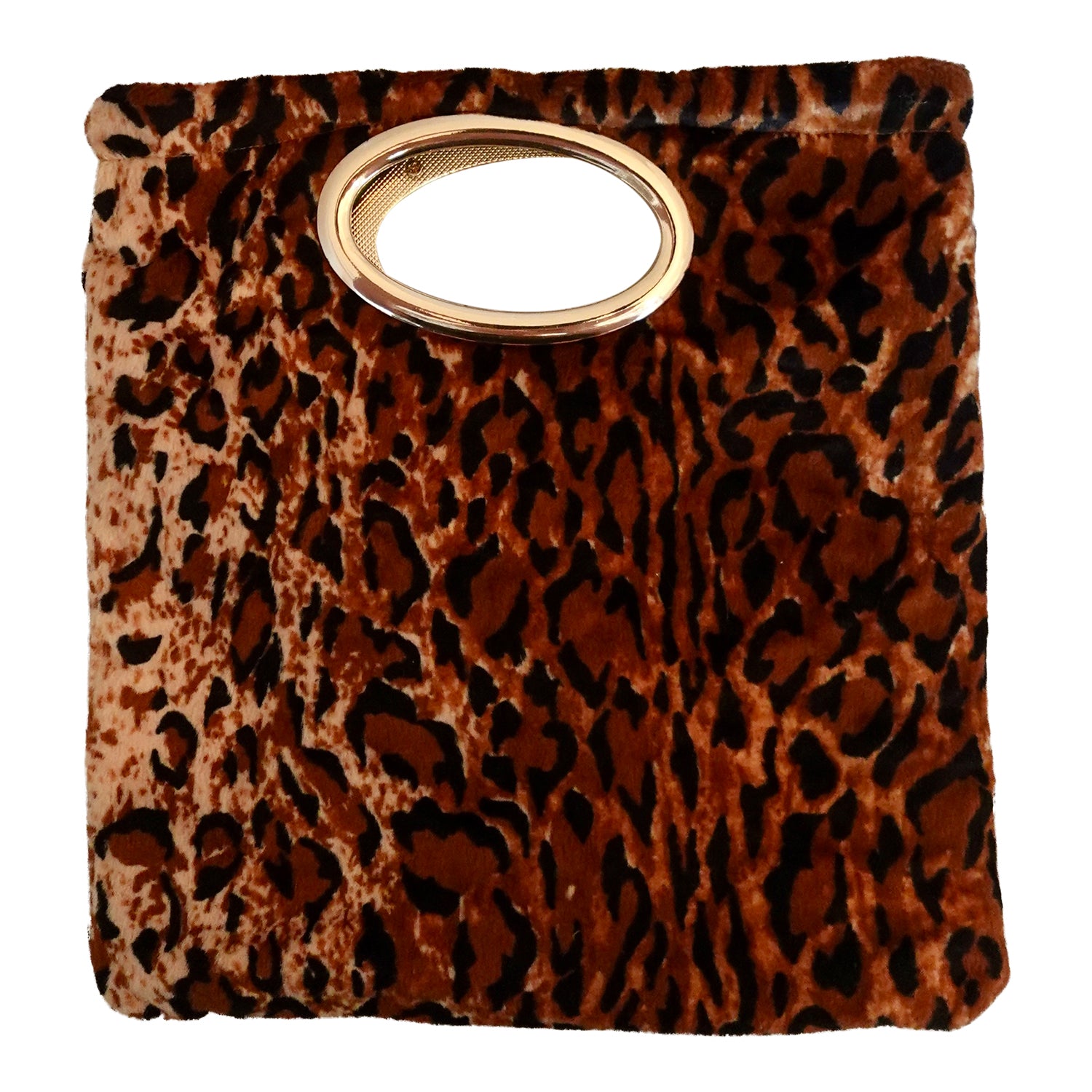 Morphy Leopard Print Velvet & Silk Gold Handle Bag