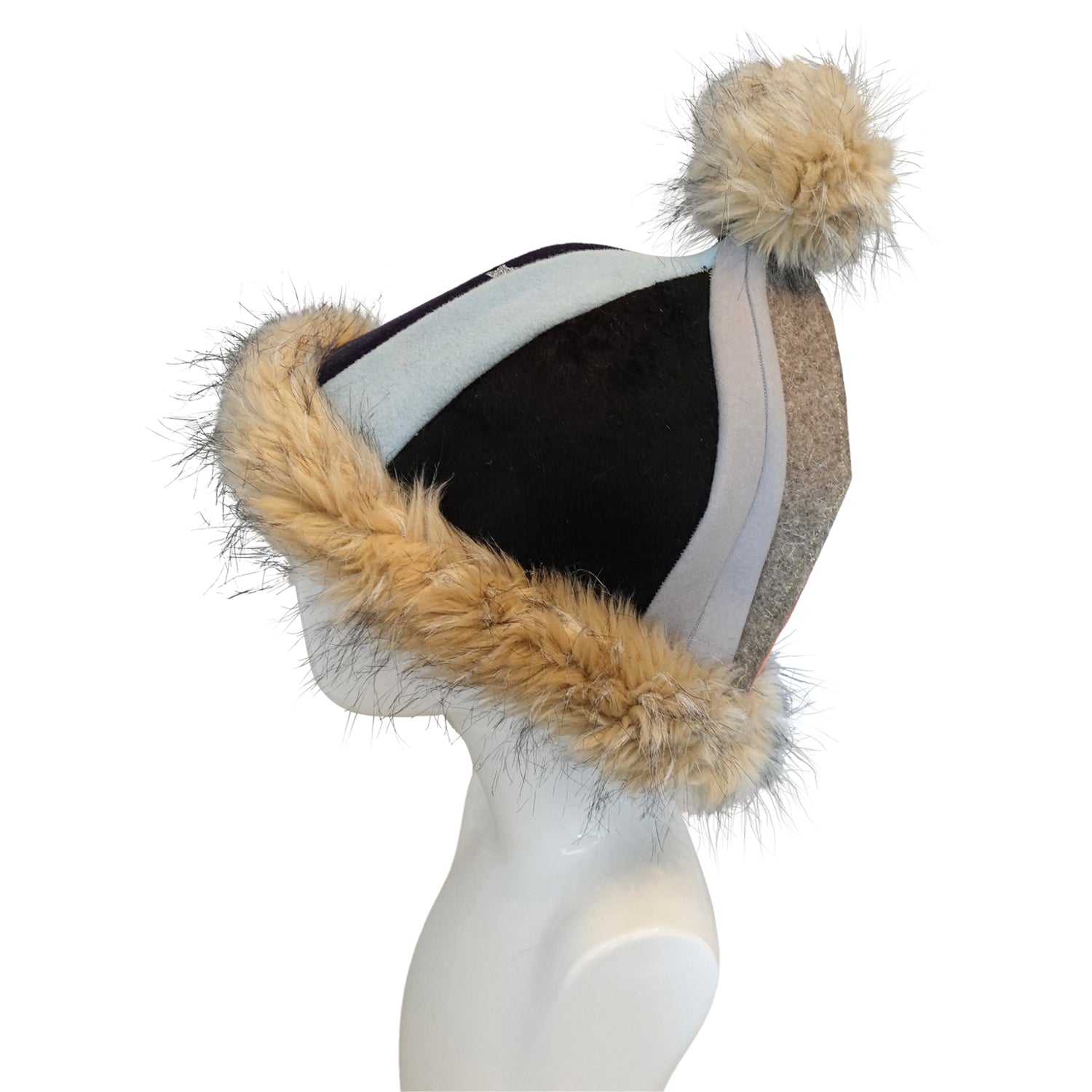 This is the 3rd of the Yule Lads, arriving Dec 14 he eats the remainder of the pie crust from the tin.  Wool felt and faux fur. Headsize 23"/  12" high.