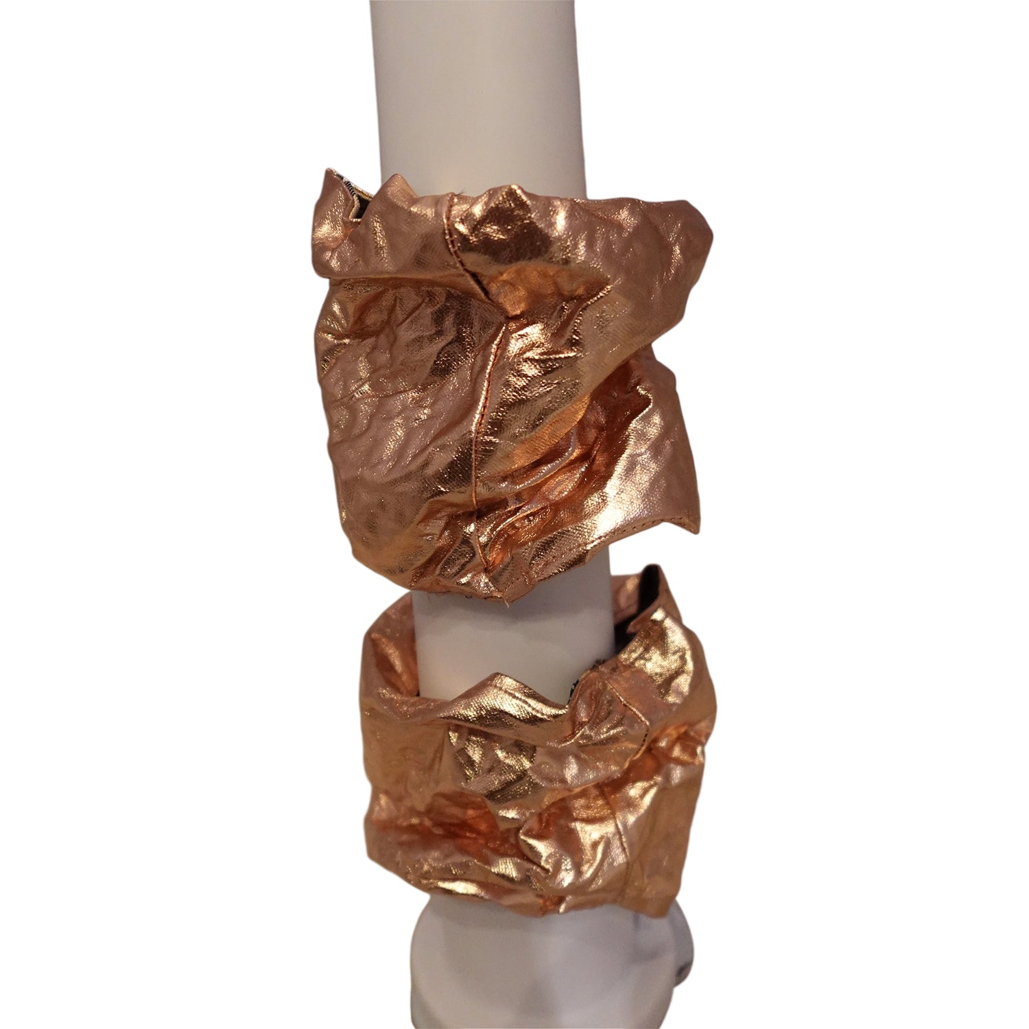 Morphy Metallic Copper Linen & Plaid Silk Wrist Cuff set of 2